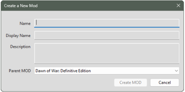 Thus, choosing "Dawn of War: Definitive Edition" as the parent gives your MOD access to all resources from the Definitive Edition.